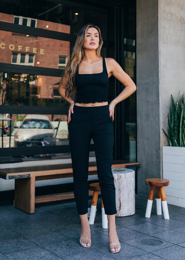 - Model Measurements: Height 5’10", Waist 30", Hips 41"